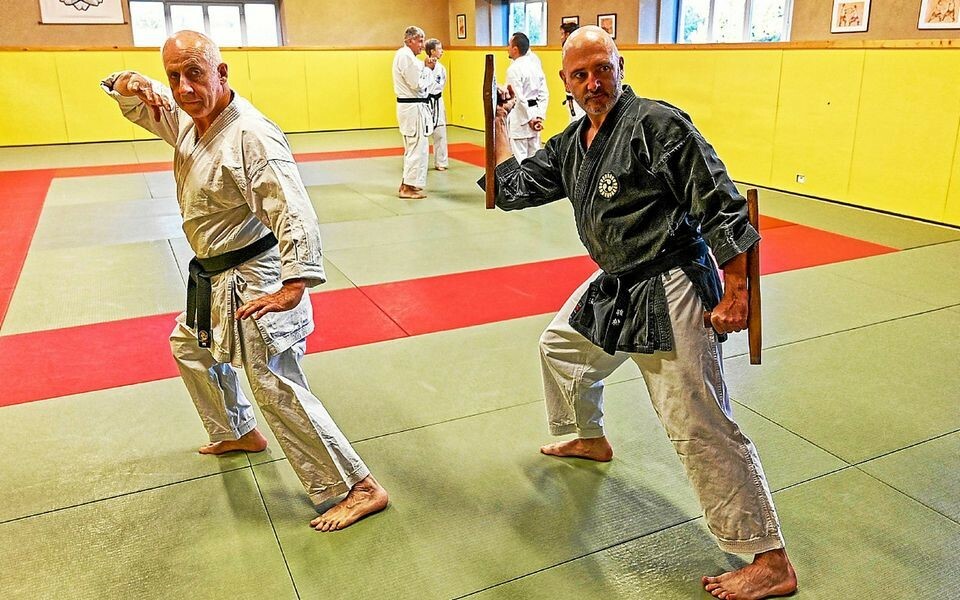 Patrice Buhannic (à gauche) enseigne le karaté, Hervé Rolland (à droite) le kobudo.